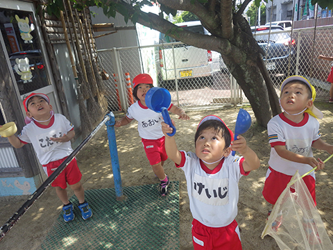 セミはまだ出現していませんが今朝はちょうちょを追いかけています