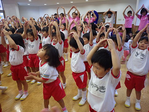 悪天候のため危ぶまれましたがなんとか東相浦幼稚園にて開催