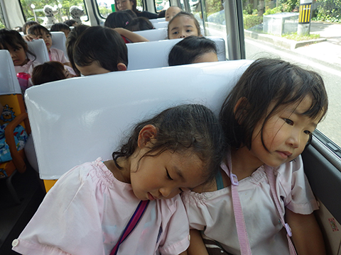 水着に着替えて、バスに乗って「いってきまーす!!」