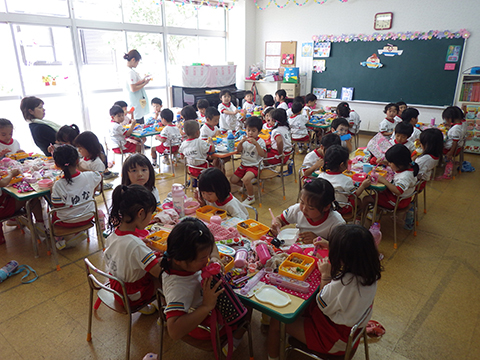 お手伝いをしてくださったお母さんたちにお礼を言って
