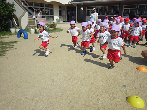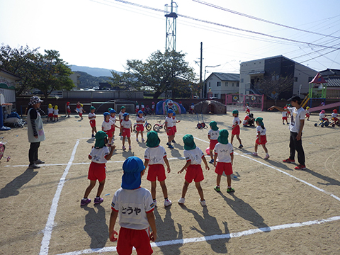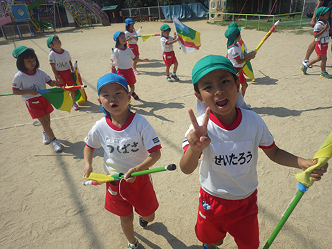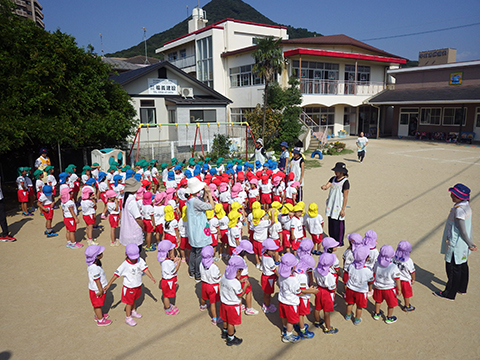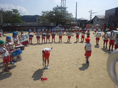 明日は8:45までに相浦小学校の園児席にお集まりください
