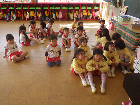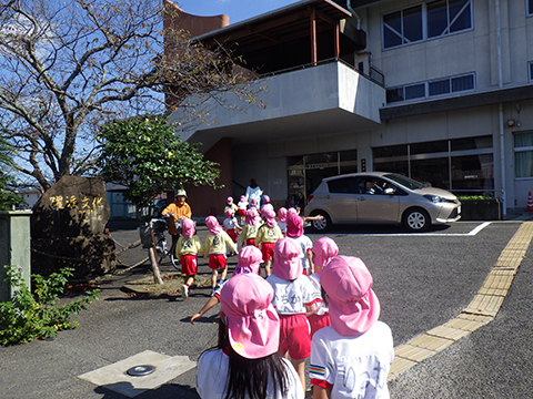 昼食後、年中児が12日の公民館まつりへ向けての練習へ出発!