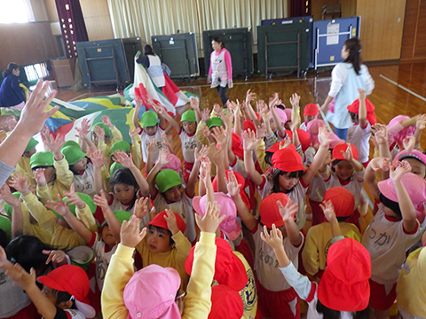 おゆうぎ室よりも広い体育館ですし、本番はたくさんの