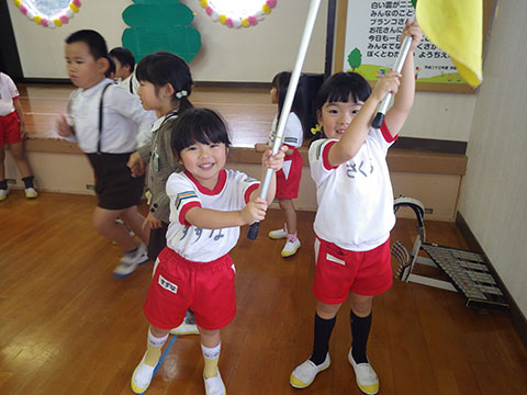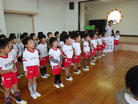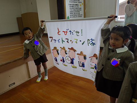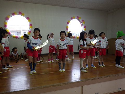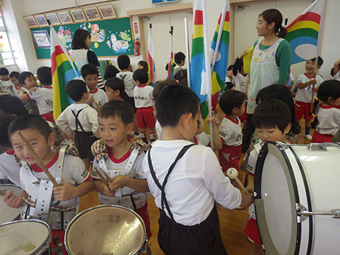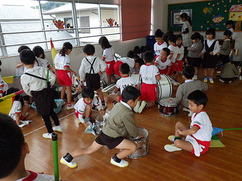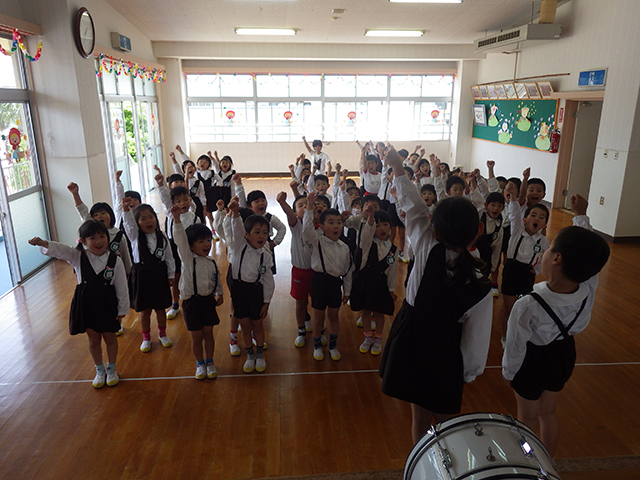 「がんばってください!!」本格的なマーチングは来年の話ですが、おゆうぎ会では
