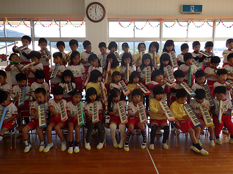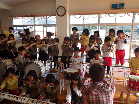 年長児、年中児の合奏と歌も気合い入っています