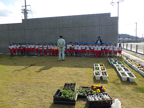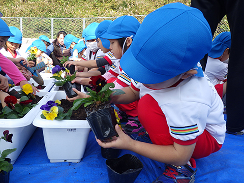 “パンジー”と“ノースポール”の2種類の冬の花を植えました