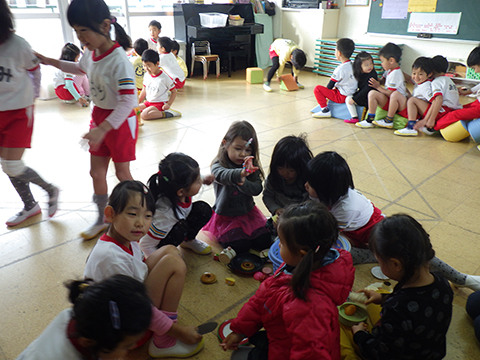 お母さんから離れることができた未就園児さんと遊んでくれたり、