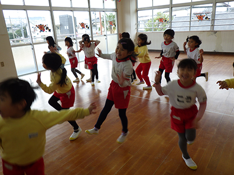 おゆうぎ室にて体操教室