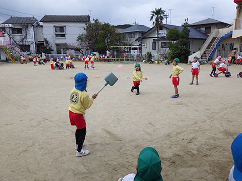 しかも、バットはスコップ。昭和の空き地の光景です。