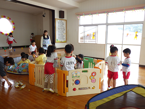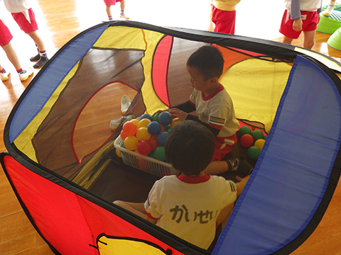 今朝はあいにくの雨でしたので、おゆうぎ室でパワー全開