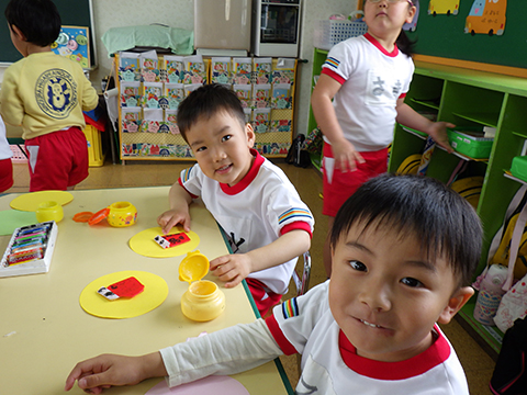 🈟年長児は、入園してくるかわいい後輩たちへのプレゼント作り