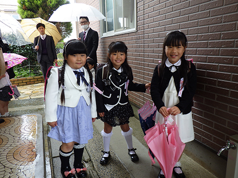 それぞれの小学校から晴れ姿を見せに来てくれる子も