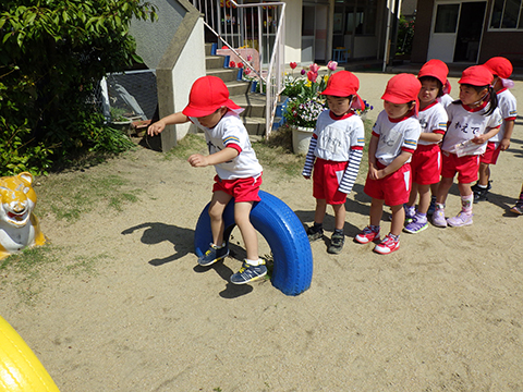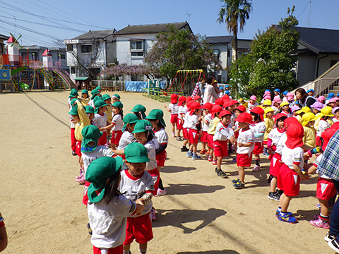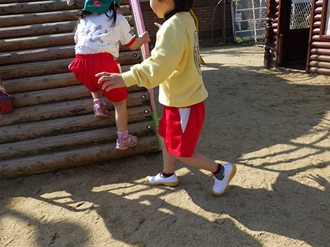 シューズのまま園庭に飛び出す新入園児や、