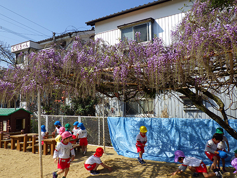 砂場上の藤棚も少しずつ花が咲きはじめています