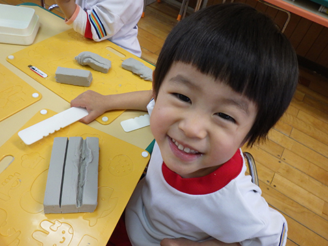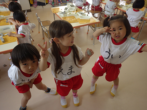 新年度に新粘土で遊んだり、シール貼りを楽しみました