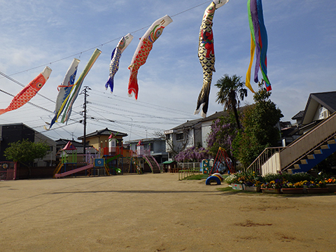 もうすぐ相浦川にもたくさんのこいのぼりが泳ぎはじめると