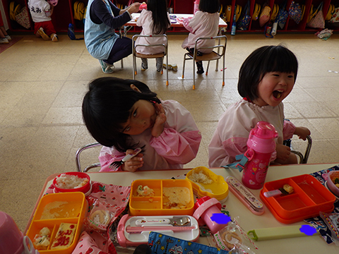 預かり保育のおやつは撮影に成功しました