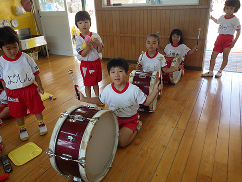 全体での練習をはじめたら、おゆうぎ室や園庭を使用しますが