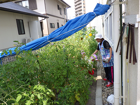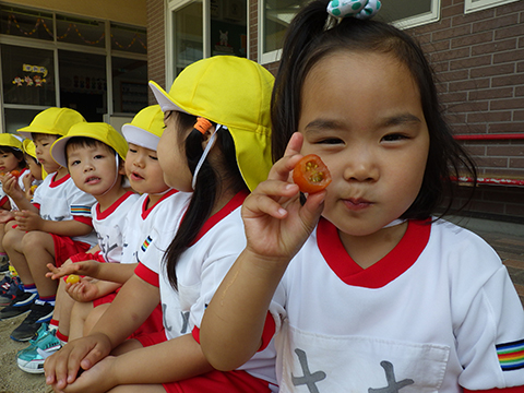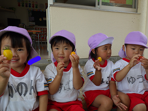 朝から畑で農作業にいそしむ年少児たち。