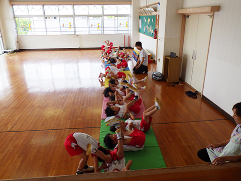 オープンハウス前の年長児体操教室では
