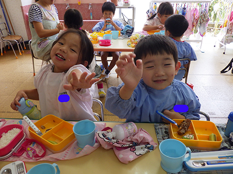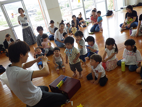 身体を動かしたあとは、おやつを食べながらプチのりショー