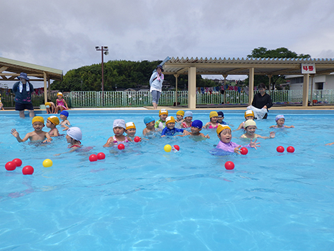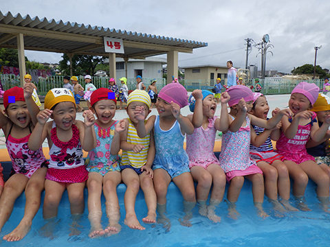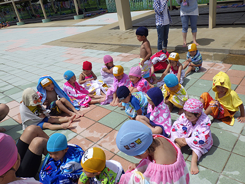 今週から年中少児もプールがはじまりました