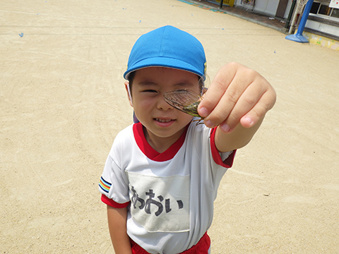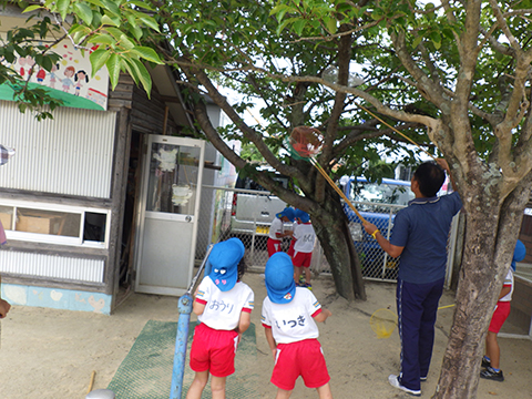 水遊びのあとは、セミ捕り