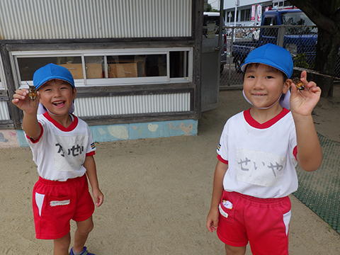 幼稚園では見かけないくらい大きなドングリ、