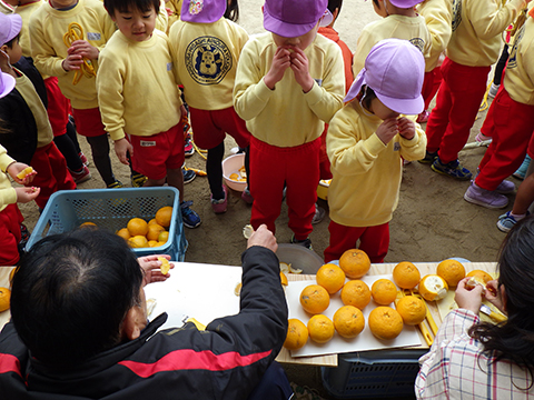 相浦の人たちですが、このみかんを食べないと卒園できないと