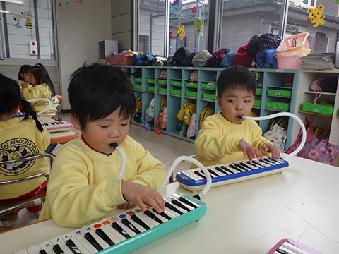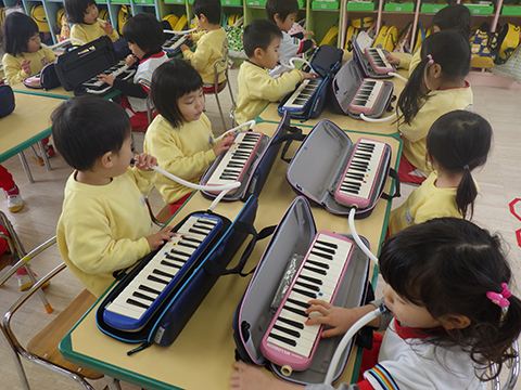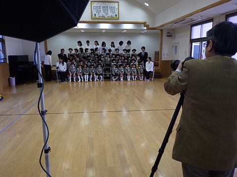 年長児、今日は卒園記念の写真撮影