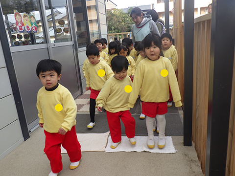 今日は仮園舎に来て2回目の避難訓練をおこないました