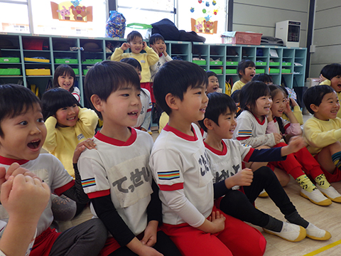 年長児、今日はのりのりショーで脳に笑いと驚きの刺激を受けました