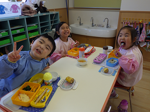 新園舎での初めての給食