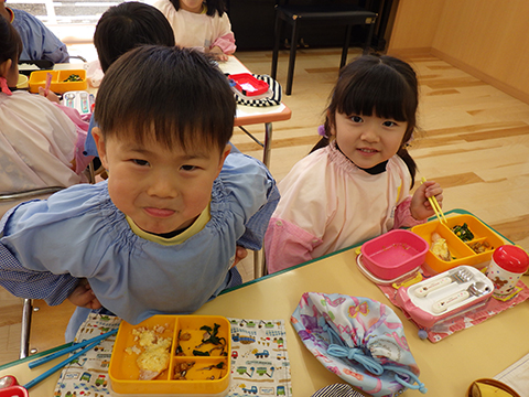 振り替えで給食の日です
