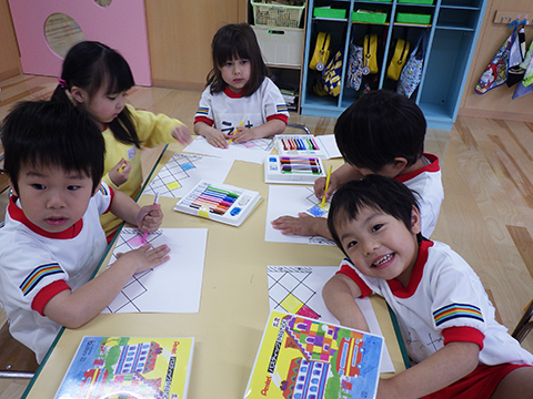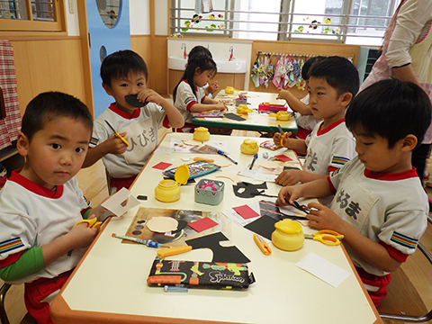 年長児、お当番グループも決まり自分の顔を製作中