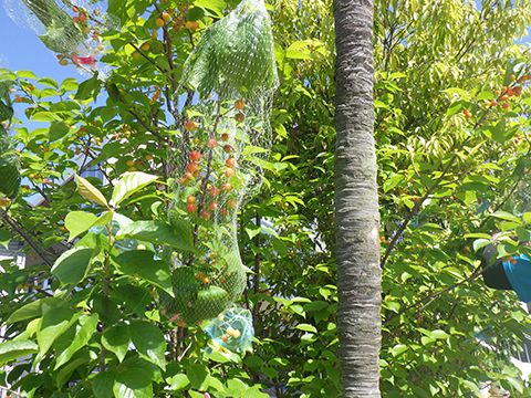 こうして丁寧にネットを被せて、鳥からさくらんぼを守ります!