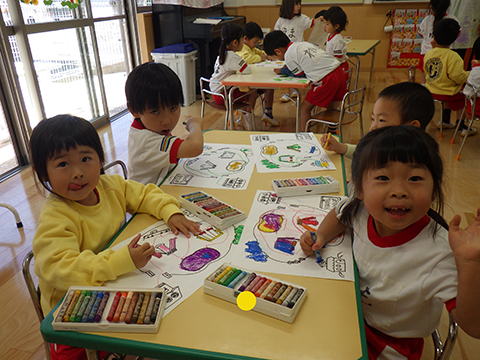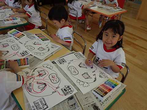 といっても園外へ出たわけではなく、机の上でクレパスのお散歩
