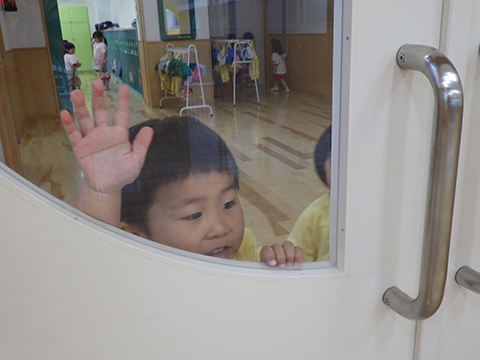 おゆうぎ室から聞こえる楽しそうな声にひかれ覗く姿が