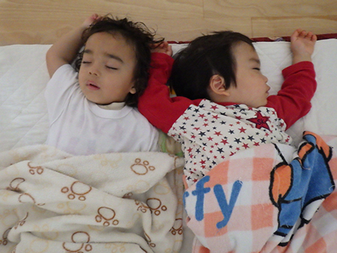 昼寝に行く途中、たねぐみの園児も