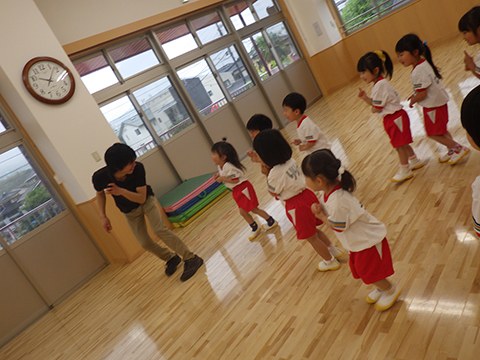 パフォーマーのときと違い、体操教室ではボケないHのり先生。