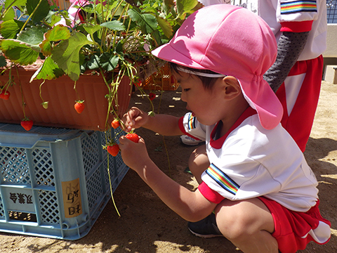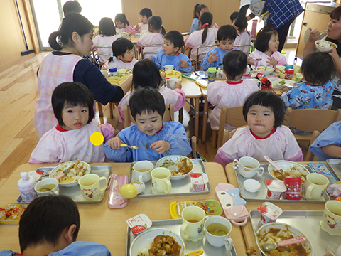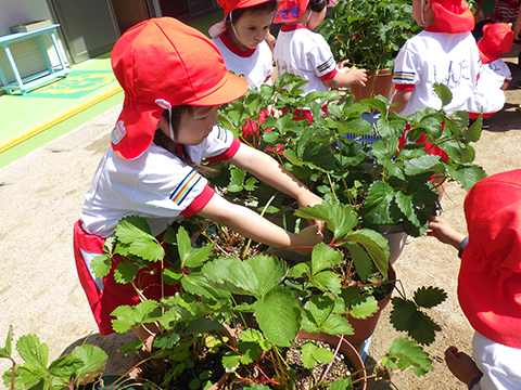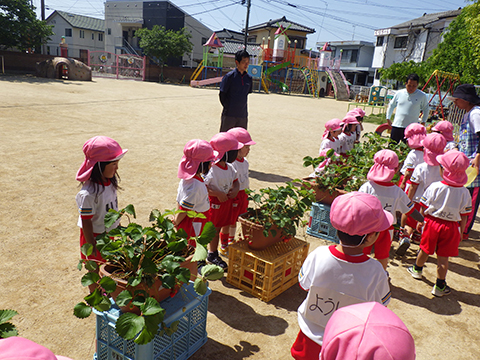 その様子をほのぼのとした様子で見つめるたねぐみの園児