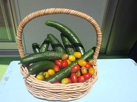 きゅうりとトマトを収穫