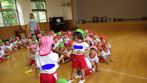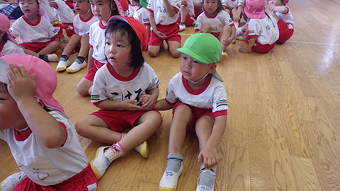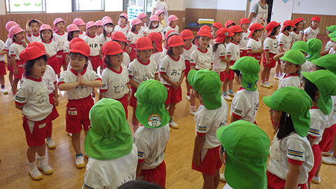 おゆうぎ室に集合して、まずは挨拶を。