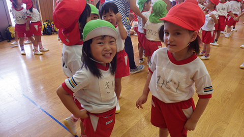 昨年度は、幼稚園工事のため仮園舎生活でしたので、東相浦幼稚園のお友だちとも