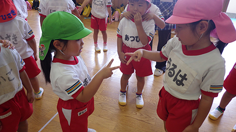 3クラスみんなで『ジャンケン汽車ポッポ』をして楽しみました。