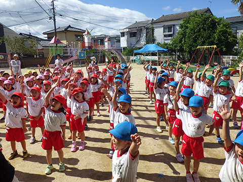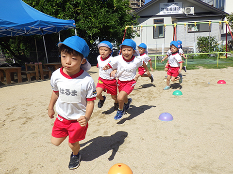 全園児でかけっこの練習