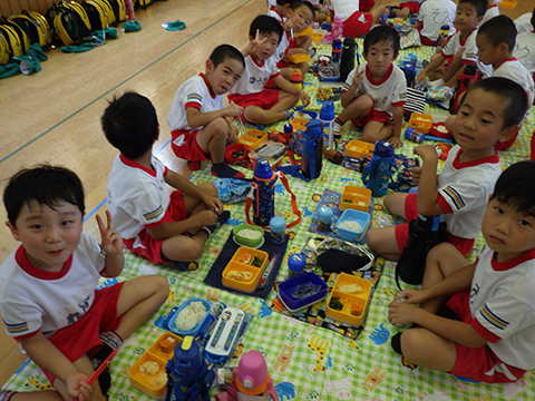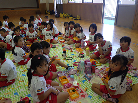 年長児はそのままおゆうぎ室で給食を食べて・・・