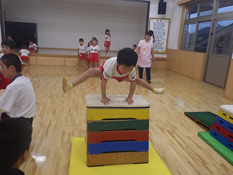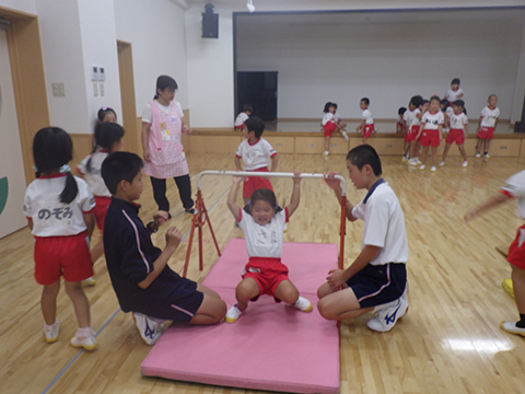 鉄棒、跳び箱の練習