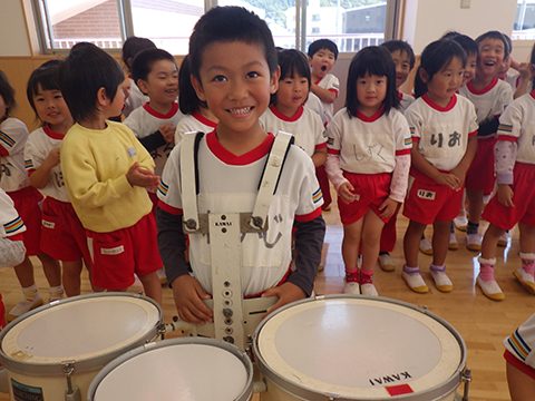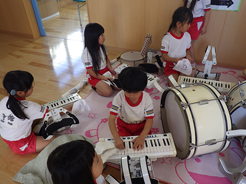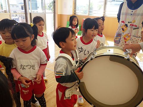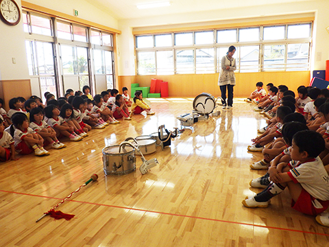 年中児「がんばります!えいえいおー!!」で、楽器の引継ぎ