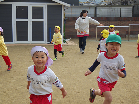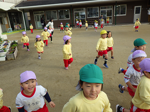 まだまだ元気いっぱいでトレーナーを来ている子が